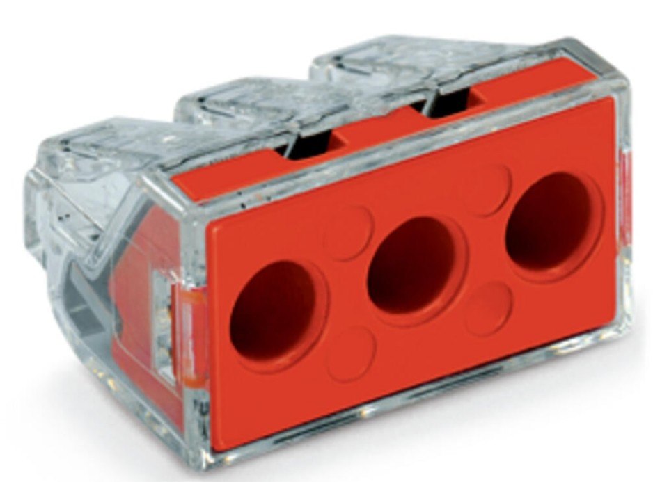Lasklem / Dozenklem; voor massieve en meeraderige geleiders; max. 6 mm²; 3-draads; Behuizingskleur transparant; Kleur afdekking rood; Omgevingstemperatuur max. 60°C; 6,00 mm²; meerkleurig