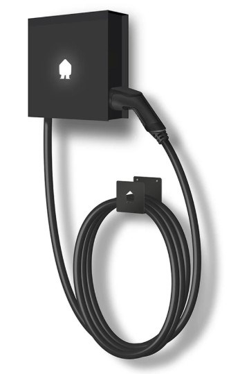 EV Wall Black mounted charger 1 or 3-Phase up to 22 kW Type 2 cable 8m with cable holder