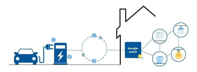 Er dient een energiemeter op kop van de installatie geplaatst te worden. In de toekomst zal de laadpaal met de digitale teller kunnen communiceren en zal de energiemeter wegvallen.