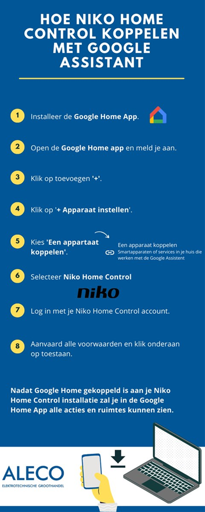 Wist je dat je Niko home Control kan connecteren met Google Home. Hoe? Zie hier onze fiche!